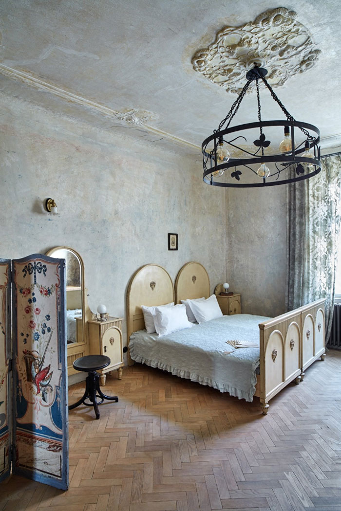 这个房间几乎没做什么改动,只是做了简单的翻新处理,家具都是上世纪的风格,铁艺吊灯是新配的,与整体风格很搭。