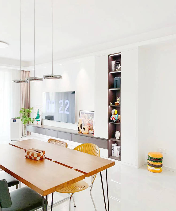3、地面选购白色瓷砖通铺,真的炒鸡显大!
