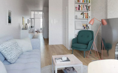户型修长,功能较为紧凑复合。雅致自然不压抑,选择白作为主色,点缀一些淡彩色的家具和绿植。 ...